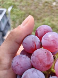 連日、ナイアガラぶどうを求めてあちこちからお客さんにお越しいただいています。すっかり完熟し、飴色になったナイアガラも多くなってきました。 直販所ではお得な家庭用チョイワルB品パック(山盛り500円、売り切れ御免)もありま […]