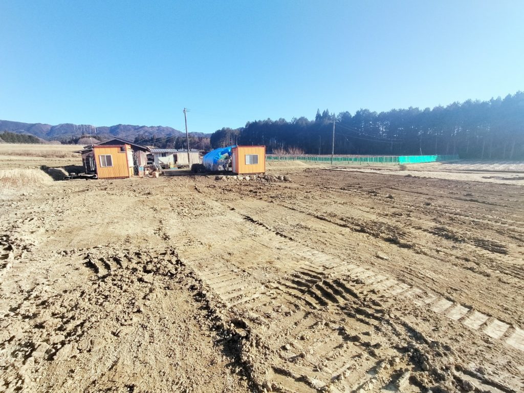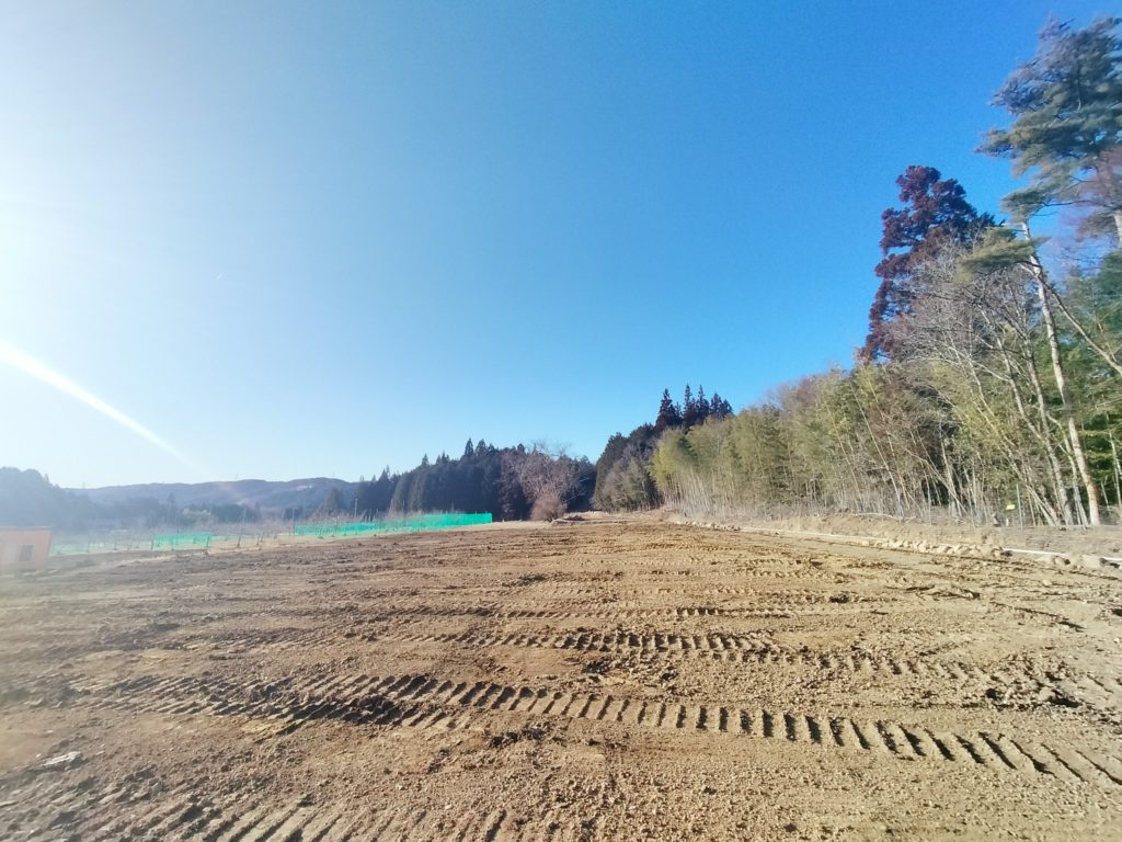 田んぼだった土地を新たに借り、そこに苗木を来年植えるのですが、まずは造成が必要。田んぼの段々を崩して、1枚のなだらかな斜面にします。バックホウをレンタルし、作業委託して造成してもらいました。