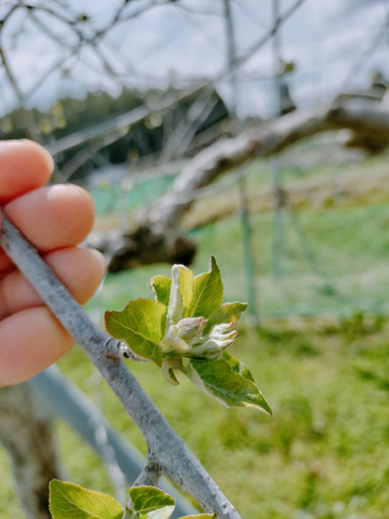 ふじりんごも蕾がどんどん伸びてきています。中には蕾の中心の赤色が覗いているものも!りんごも、花が咲いたら摘花が始まります。忙しくなりそう~。
